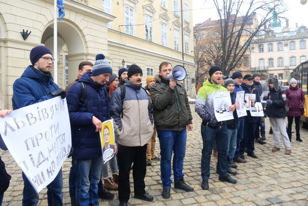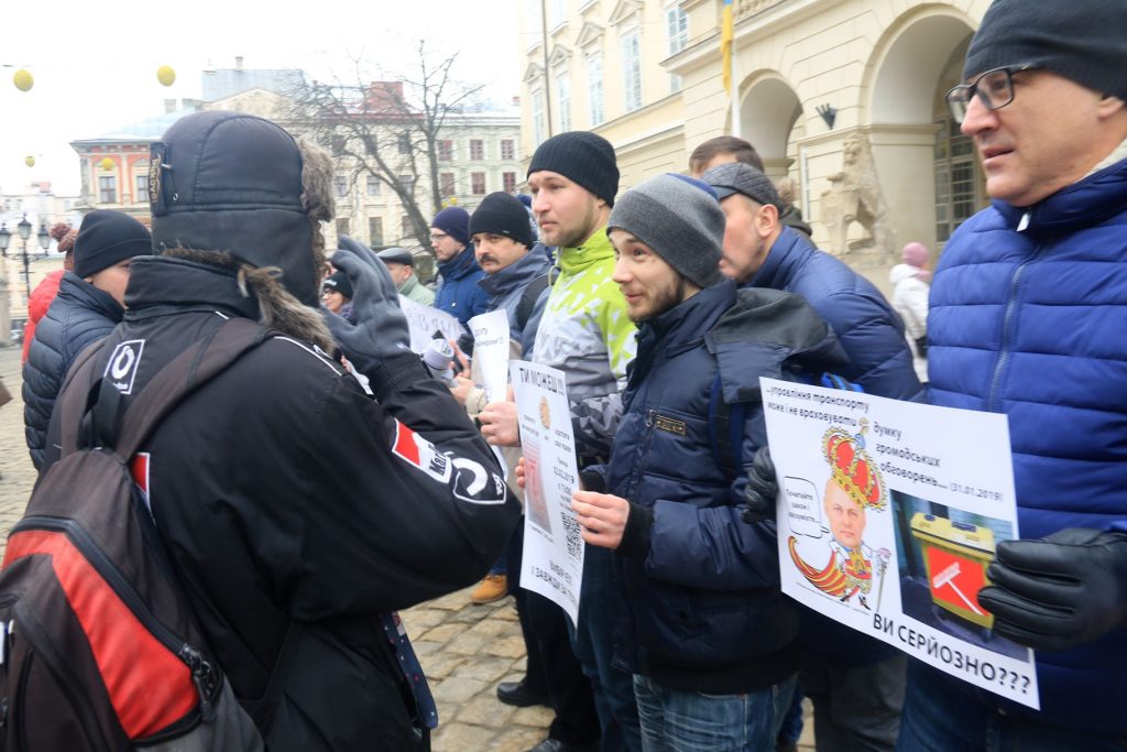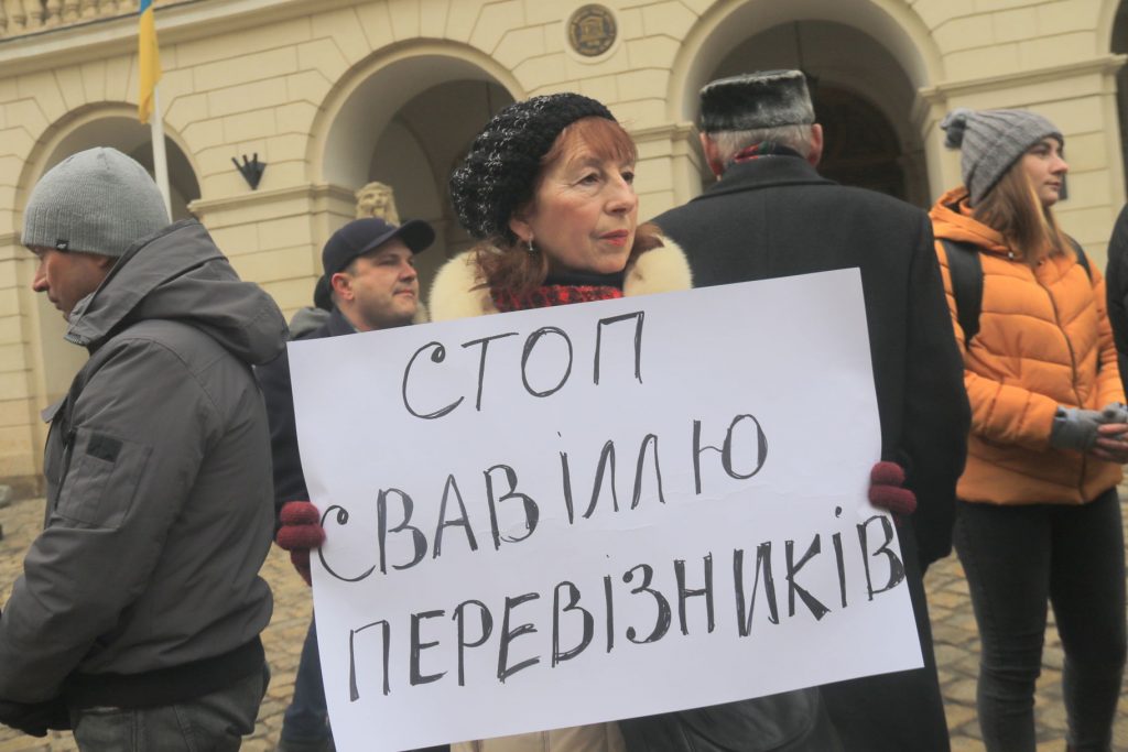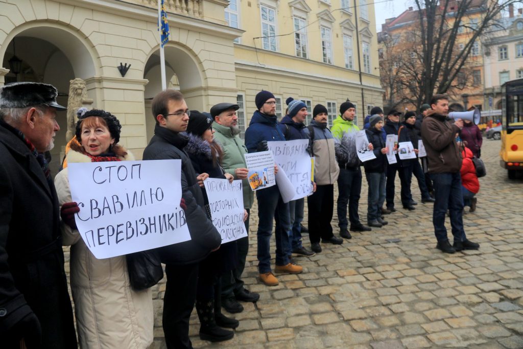 Сьогодні, 2 лютого, під стінами львівської ратуші зібрались активісти, аби висловити свою незгоду з підняттям цін на проїзд у маршрутках міста з 5 гривень до 7.