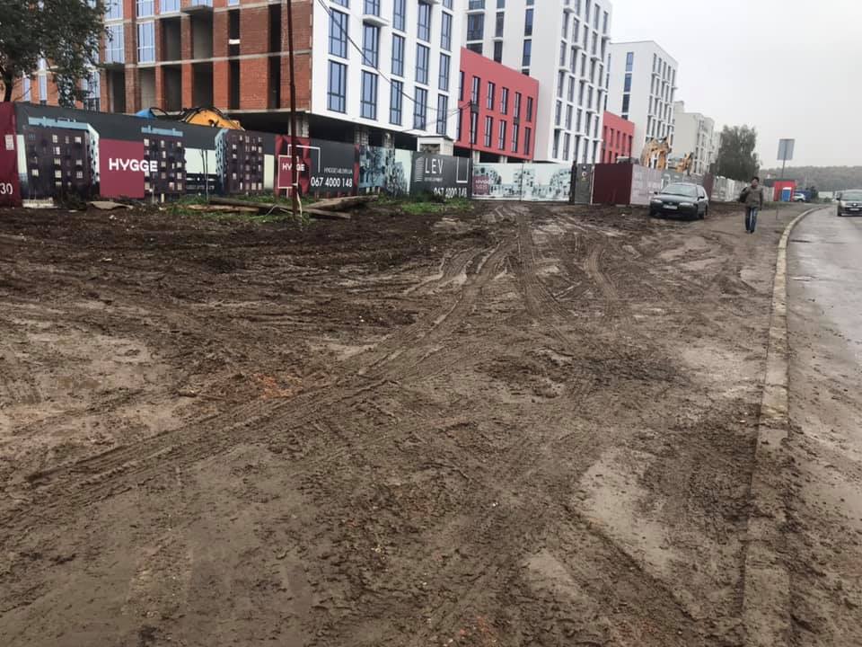 У Львові городяни скаржаться на те, що територія біля будівельних майданчиків стає «непрохідною від болота», оскільки ні забудовники, ні комунальники не котролюють чистоту у місті.