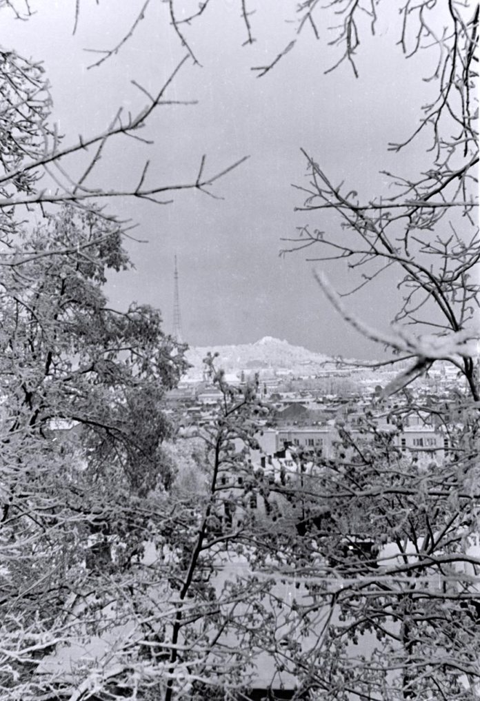 Снігу у Львові в далекому 1961 було досить. На світлинах видно як він товстою периною вкриває вулиці, дахи будинків і гілки на деревах.