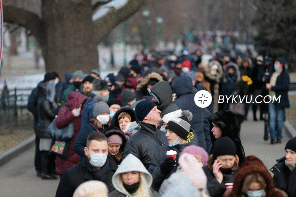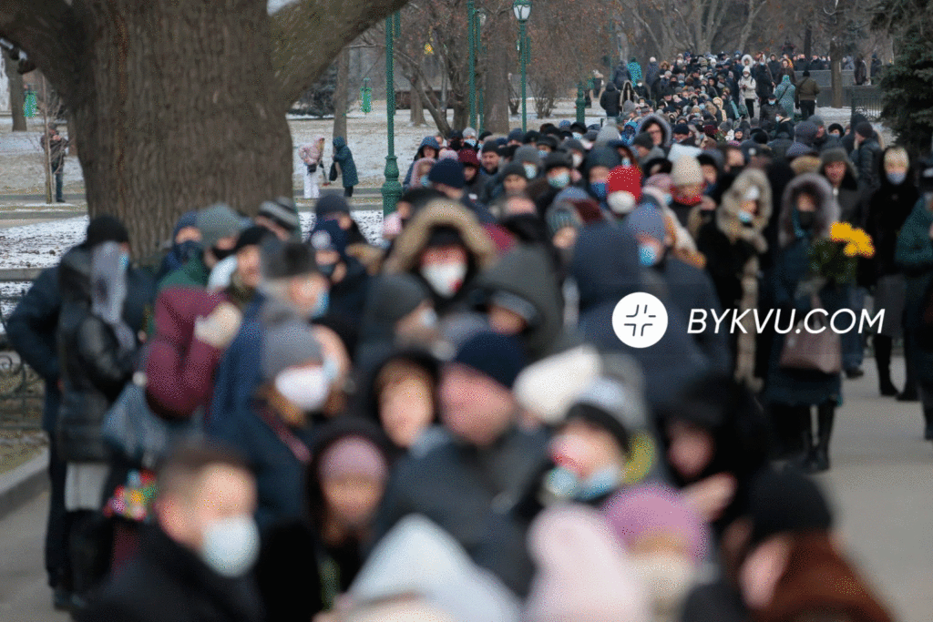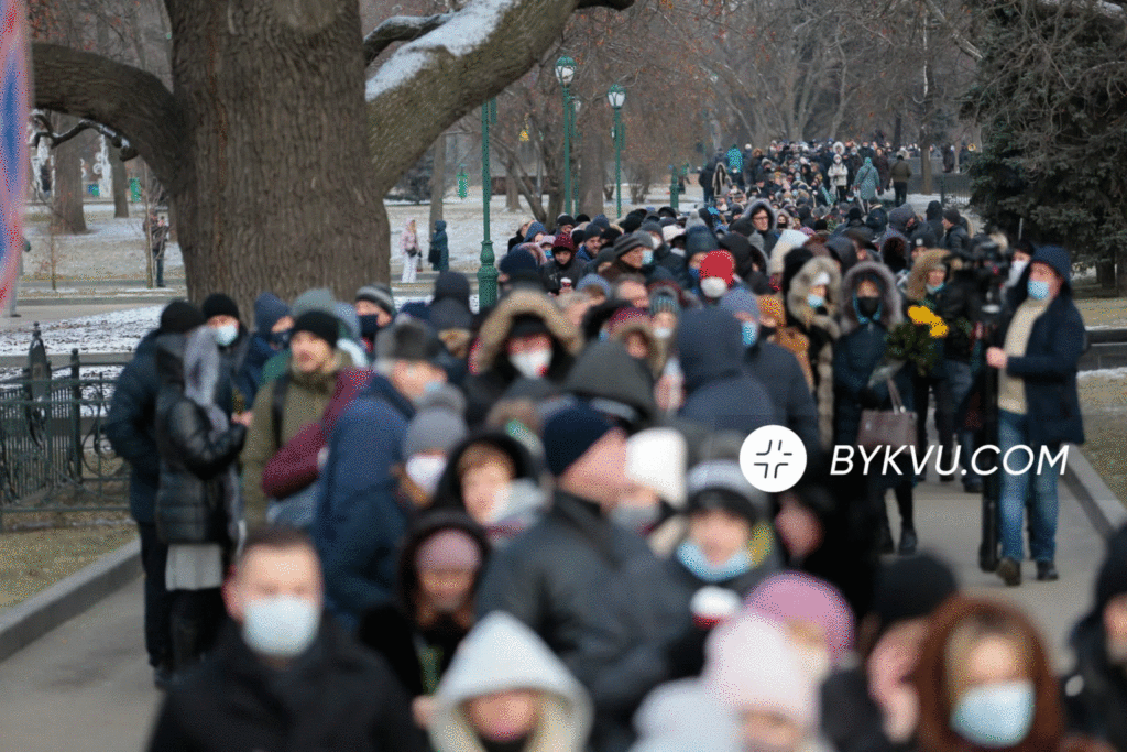 10:26 – ось так виглядає чергу з людей, які прийшли попрощатися з мером Харкова.