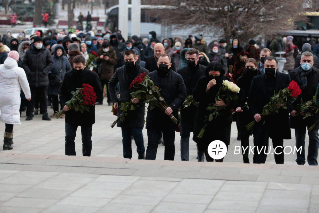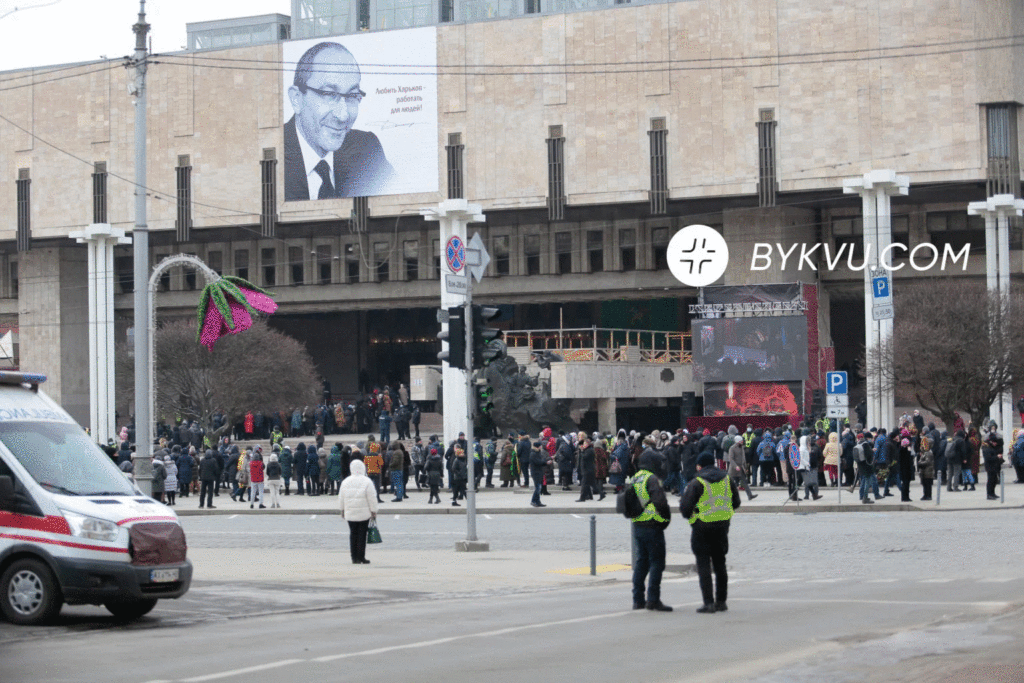 12:54 – прощання з мером Харкова продовжили до 13:45. Люди йдуть та йдуть.
