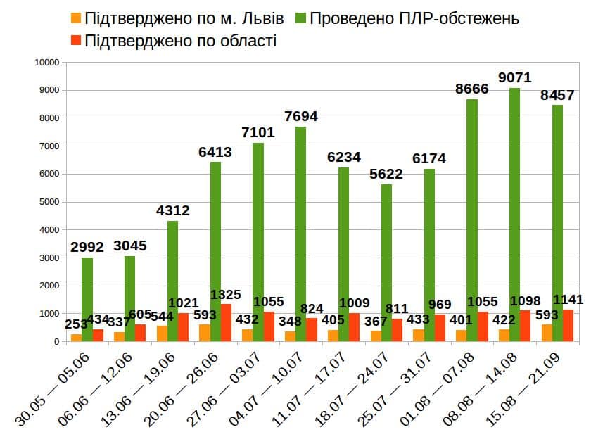 Оприлюднено щотижневі статистичні дані щодо захворюваності на коронавірус у Львівській області.