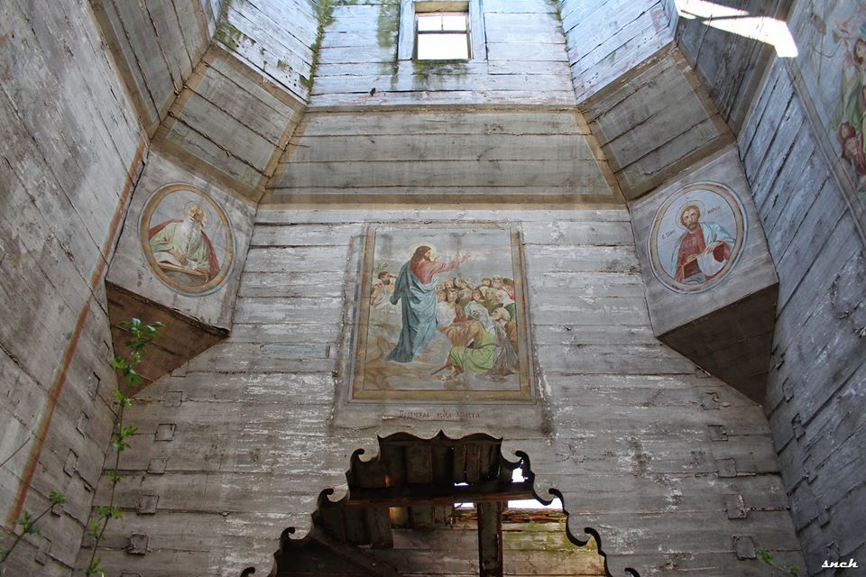 “Руїни церкви Олександра Невського у селі Біловежі Перші на Чернігівщині 1856 рік. Скоро вона стане зовсім не помітною через суцільні хащі навколо. Але ми все ж потрапили в середину, побачили зображення святих та чудові різьблення. Людська байдужість дивує”, – йдеться в дописі.