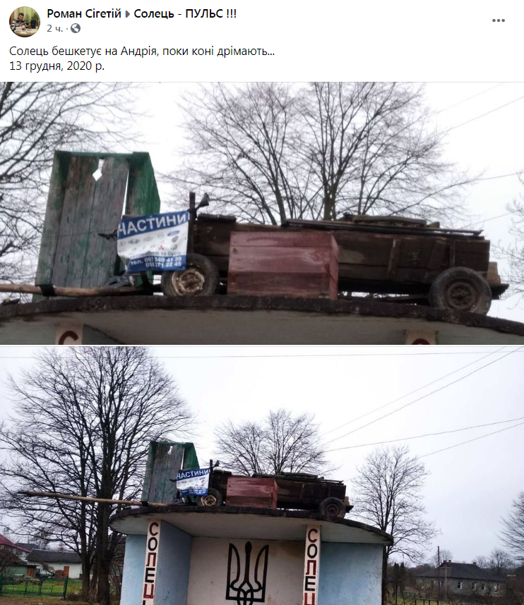 «Солець бешкетує на Андрія, поки коні дрімають… 13 грудня, 2020 р.», – зазначається у коментарі до світлин на сторінці спільноти «Солець Пульс» у ФБ.