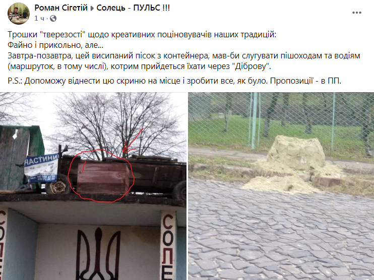Як повідомлялося, на Львівщині підводу поставили на дах зупинки громадського транспорту.