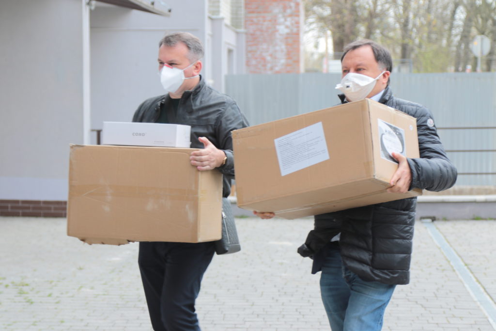 Сьогодні, 17 квітня, народні депутати від “Європейської солідарності” Микола Княжицький та Олег Синютка передали медзакладам Львівщини чергову партію професійних захисних костюмів та окулярів для лікарів, які працюють з хворими на коронавірус, пише 4studio.