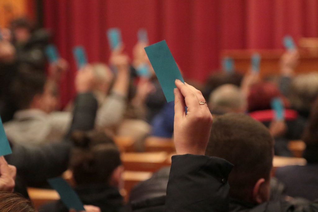 Вже традиційно у залі зібрались працівники “Львівелектротрансу”, які й проголосували за рішення, яке вигідне керівництву, а саме – 6 гривень за квиток куплений заздалегідь, 7 грн – за квиток куплений у водія.