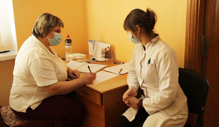 Потім лікарка розпитує про стан здоров’я – хронічні захворювання та алергічні реакції.
