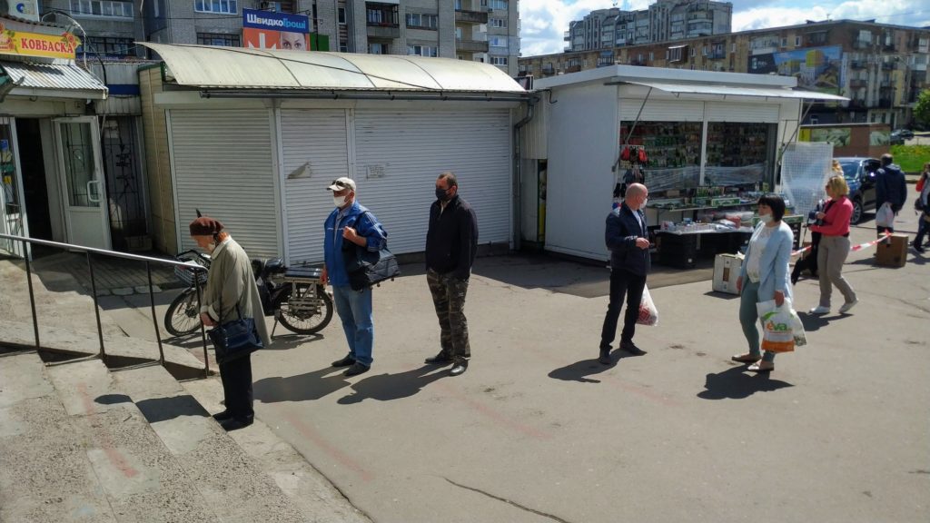 Як пише «Четверта студія», газета «Новини Прибужжя» повідомляє, що при вході охоронець вимірює людям температуру тіла безконтактним термометром і розпилює їм на руки дезінфікуючий розчин. Всередину впускають покупців із розрахунку одна особа на 10 квадратних метрів площі. Між продавцями та клієнтами натягнуто захисні екрани із поліетиленової плівки.