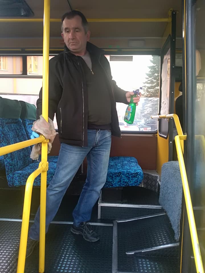 “Дезинфекція від коронавірусу по-трускавецьки. Так, при наймі, нас інформує міська влада. Коли це так, то такі роботи проводяться в захисному костюмі, в захисній масці, рукавицях та окулярах.