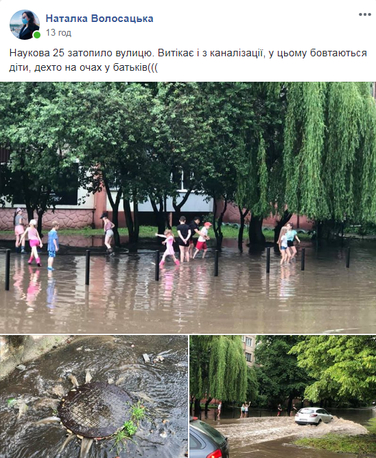 “Наукова, 25 затопило вулицю. Витікає і з каналізації, у цьому бовтаються діти, дехто на очах у батьків”, – зазначається у коментарі до світлин.