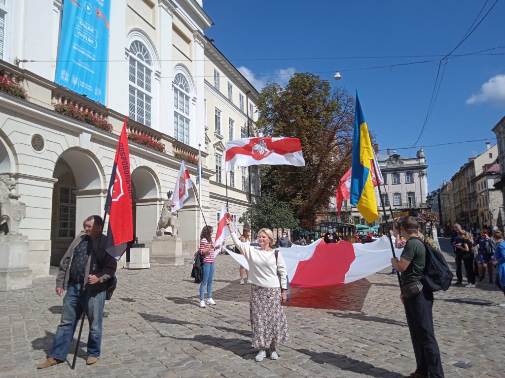 Сьогодні, 8 вересня, у Львові за участі представників опозиційних сил Білорусі відбулась Акція солідарності з братнім білоруським народом, інформує 4studio.