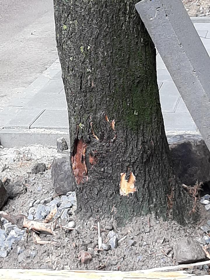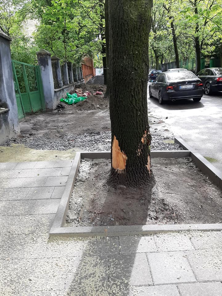 У Львові під час укладання тротуарів робітники пошкодили дерева. Йдеться про дерева на вулиці Академіка Єфремова, які пошкодили тракторцем.
