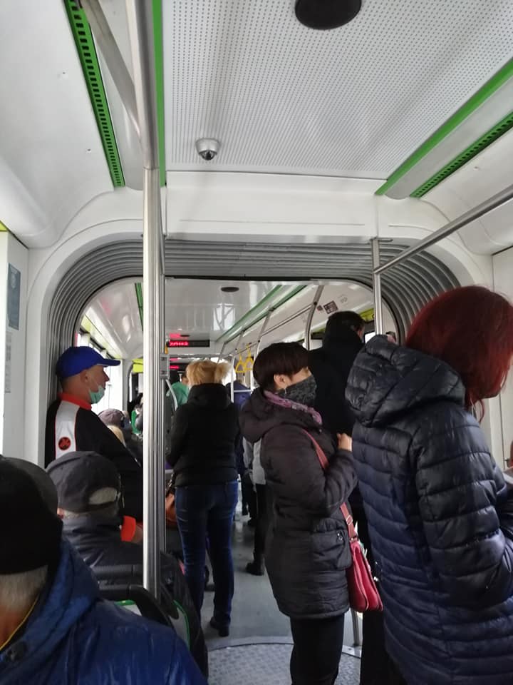 У Львові попри карантин курсують переповнені трамваї.