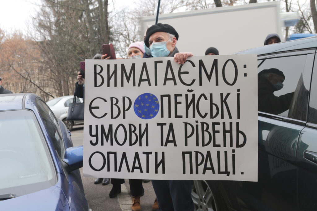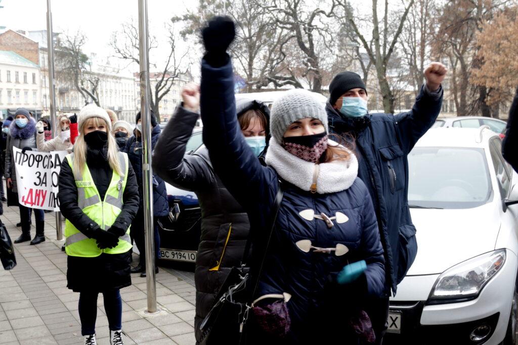 Вранці під стінами ЛОДА зібрались десятки активістів із плакатами з красномовними гаслами й вимагали від влади недопустити прийняття низки законопроєктів, ініційованих Урядом та окремими народними депутатами, що продовжують політику наступу і звуження прав працівників і профспілок, а також неврахування пропозиції профспілок у проєкті Державного Бюджету на 2021 рік, зокрема щодо підвищення заробітної плати та державних соціальних гарантій, недофінансування галузей економіки і бюджетної сфери, особливо це стосується медиків та освітян.