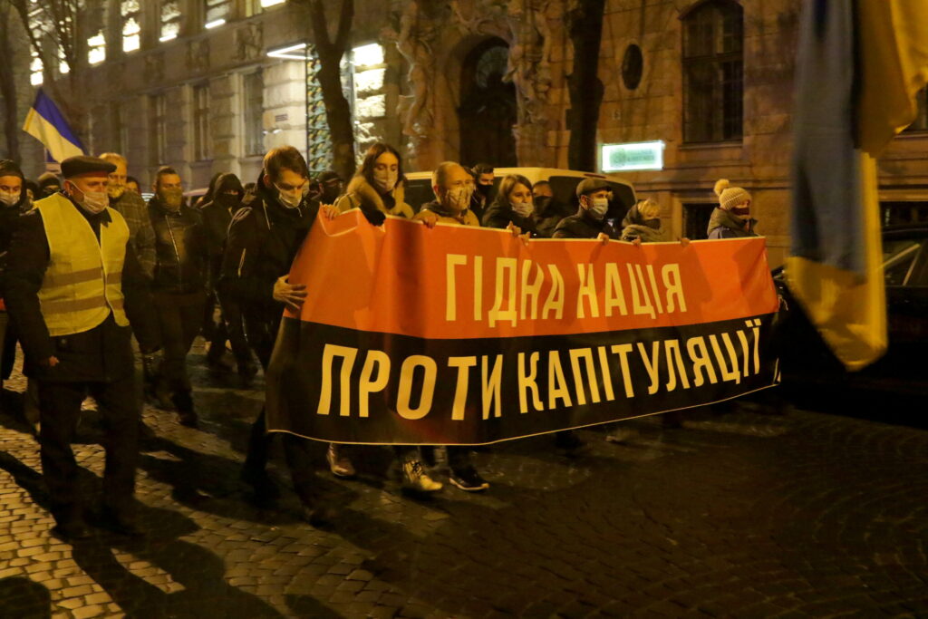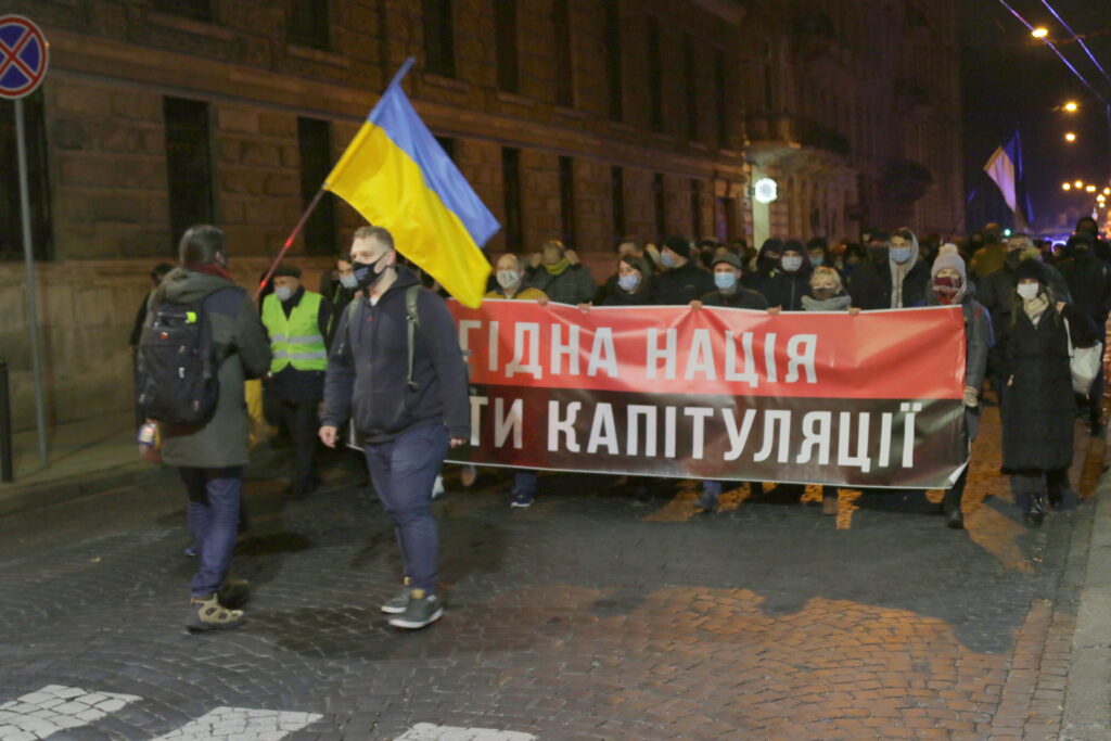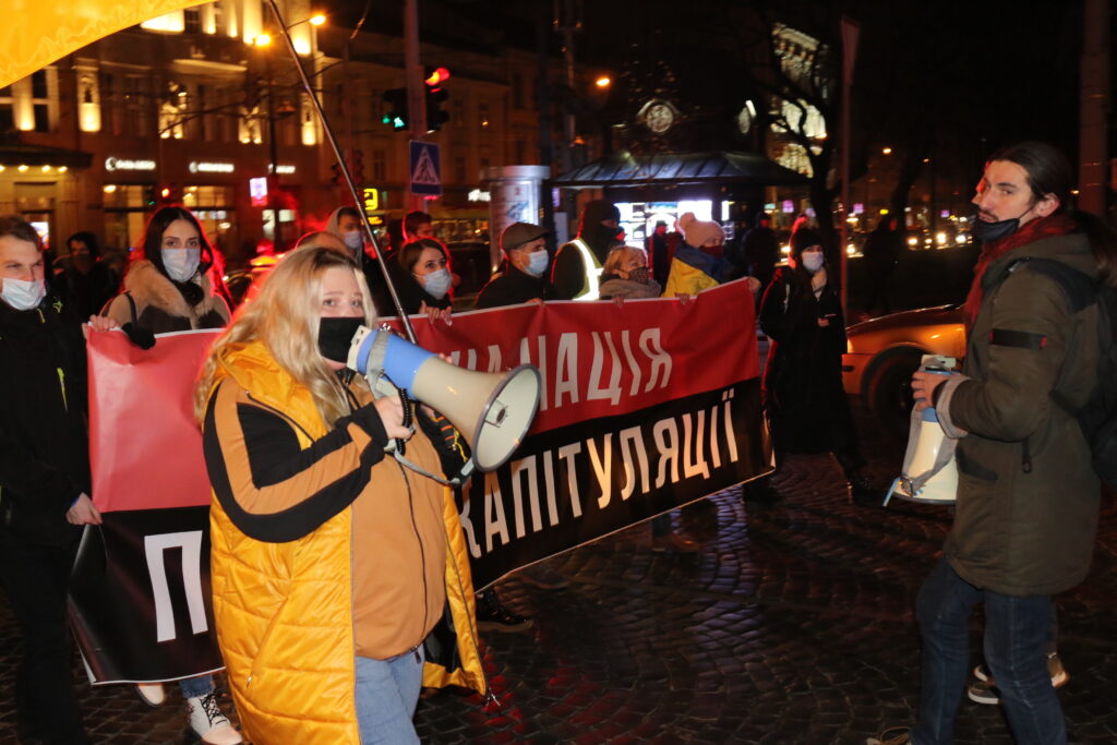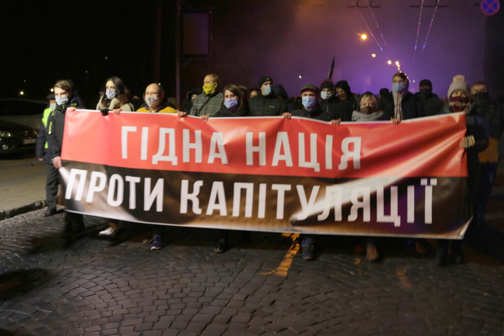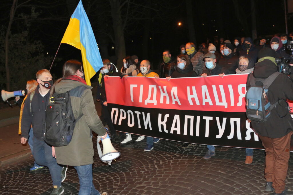 Участь у заході взяли десятки небайдужих активістів, які наголосили на тому, що вони виступають проти капітуляції української нації перед сусіднім агресором.