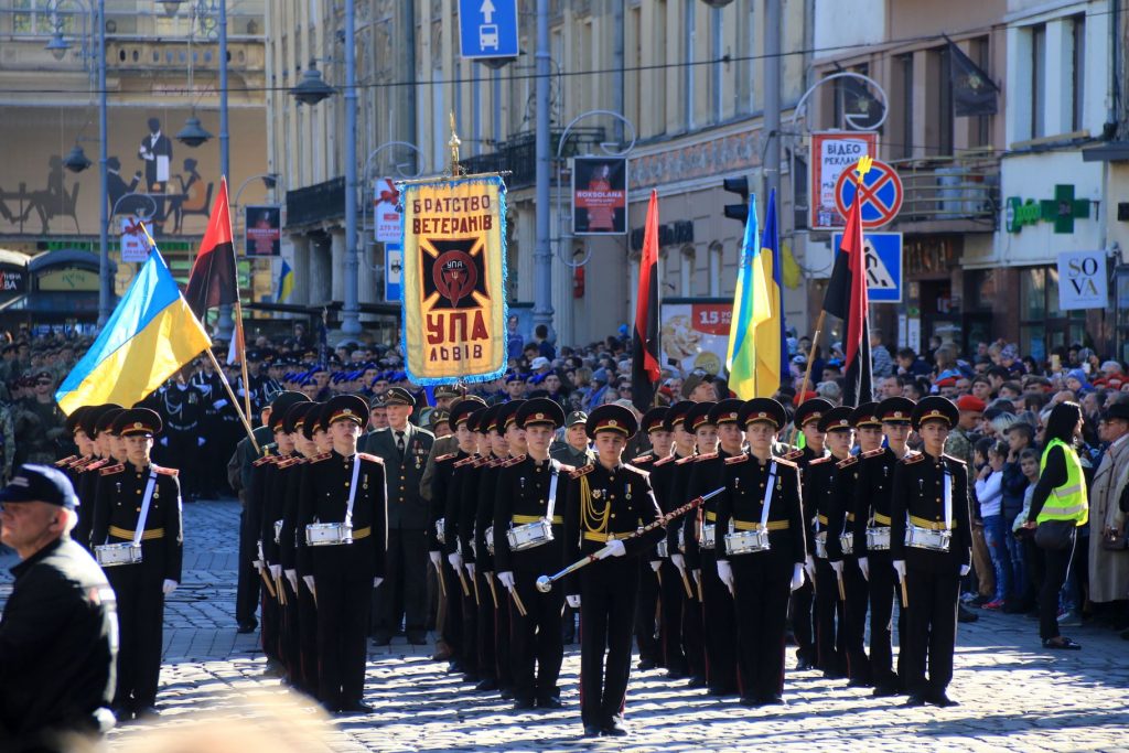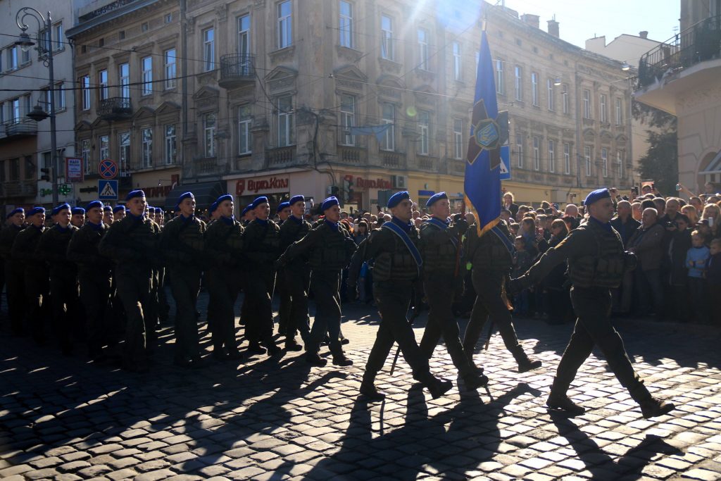 Сьогодні, 14 жовтня, у день, коли держава офіційно відзначає важливу дату – День захисника України, проспектом Свободи пройшов «Марш захисників України», участь у якому взяли понад 1200 військовослужбовців зі всієї Львівщини, учасники АТО та ООС, ветерани УПА, волонтери, реконструктори в одностроях УПА та козацькі громадські організації. Марш зібрав на вулицях Львова більше 20-ти тисяч людей.