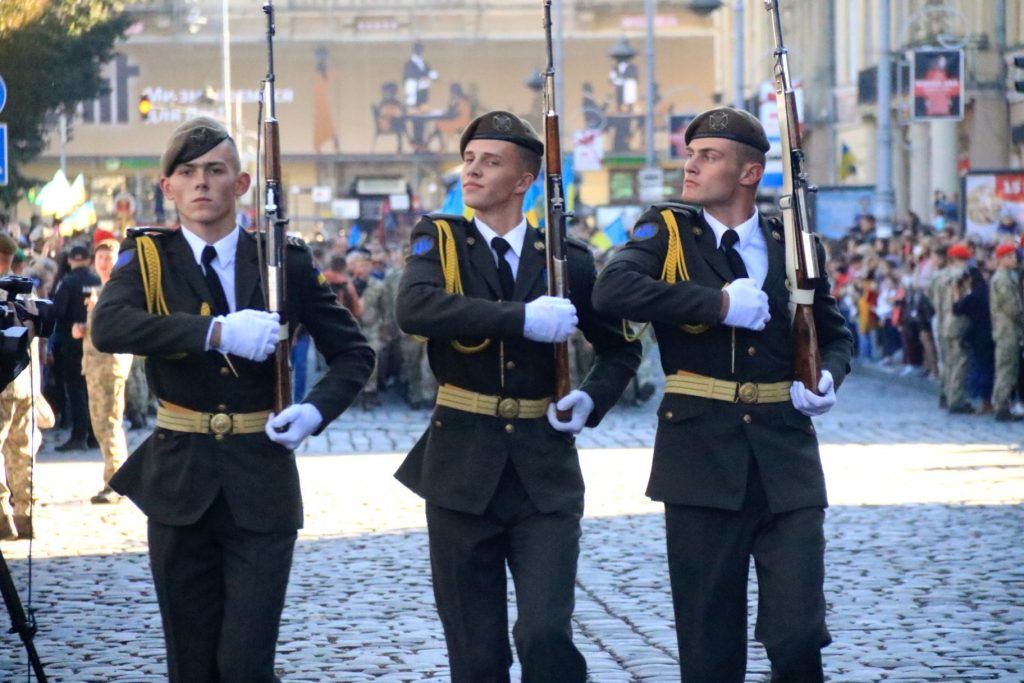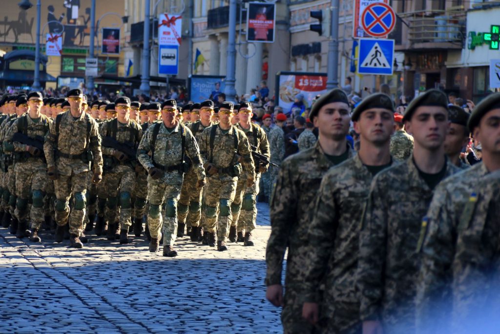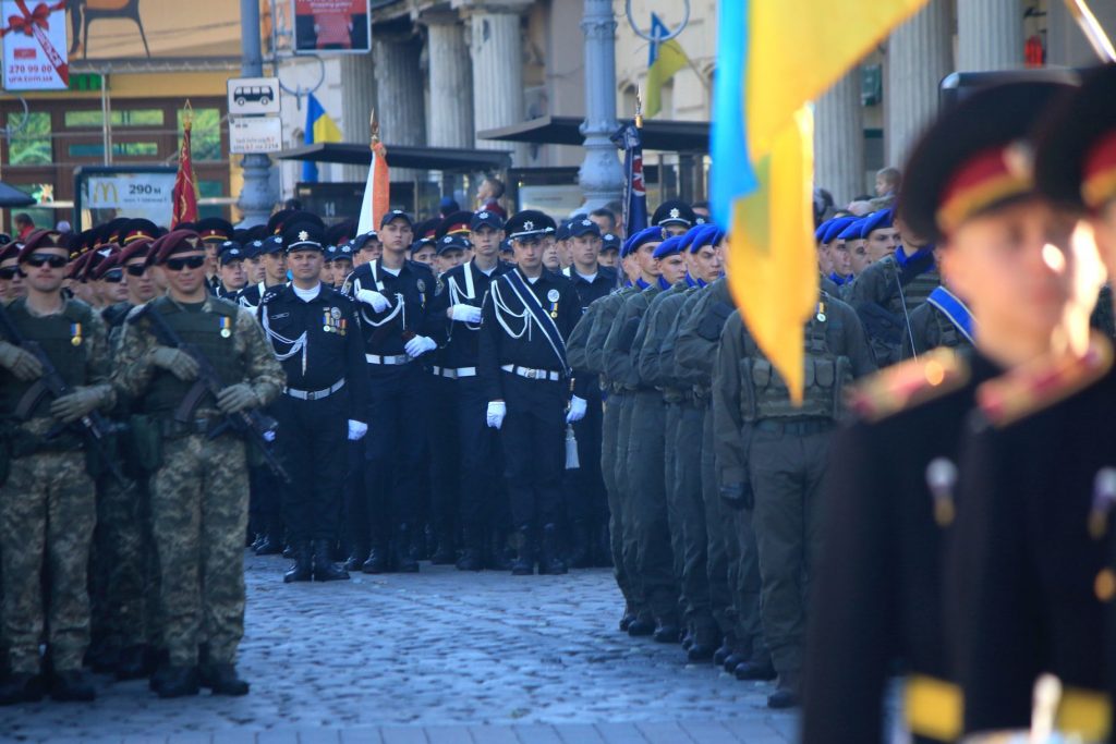 “Слова маршу нової української армії – це не просто гімн нового українського війська. Тепер це гімн нової Української держави, що твориться болем і кров’ю, потом і сльозами, але держави, яка невпинно йде вперед. Наш синьо-жовтий стяг гордо тримають воїни УПА, які першими пройшли маршем. Ми маємо можливість тут сьогодні жити в мирі та злагоді і творити нашу державу, бо сьогодні ті, хто пройшли пекло початку війни і репрезентують нову українську армію, є разом з нами. За тисячу кілометрів від Львова стоїть армія, яка боронить нашу землю. Сьогодні наші солдаті озброєні, вишколені, вдягнуті і нагодовані, бо кожен українець віддав за це свою частинку, зробив що міг”, – наголосив голова Львівської ОДА Олег Синютка.