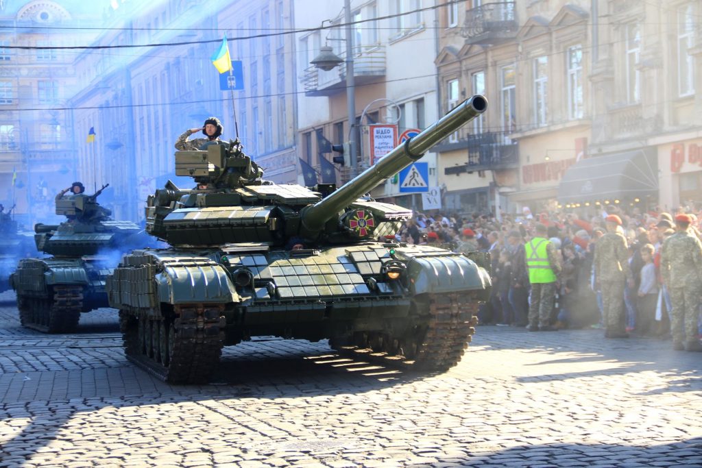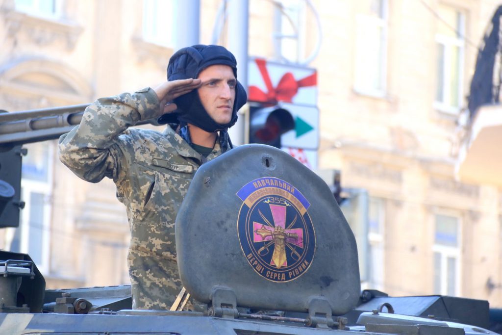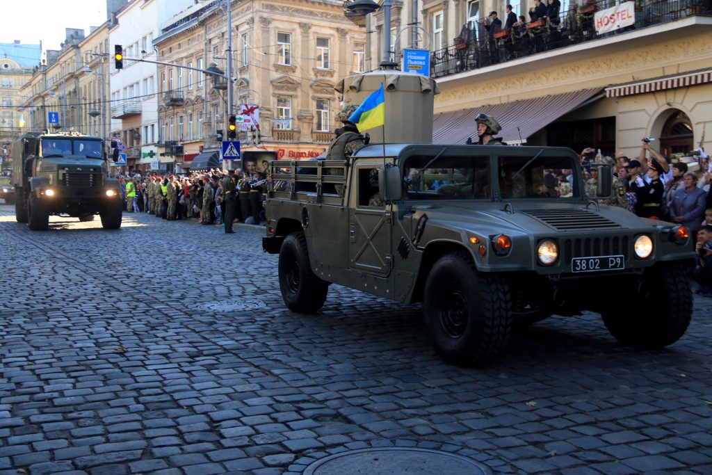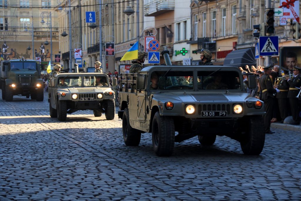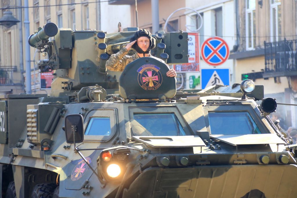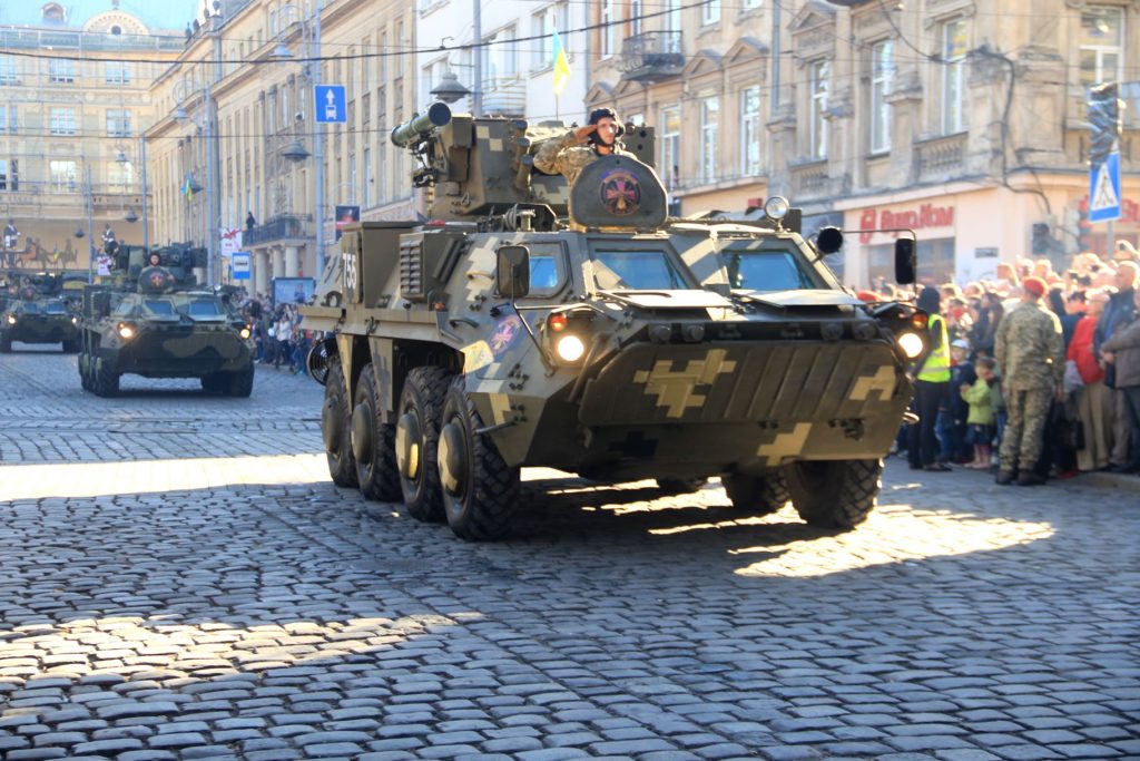 Проспектом Свободи рухались повнопривідні восьмиколісні бронетранспортери БТР-4Е «Буцефал», розроблені у Харкові, із встановленими українськими бойовими модулями «ПАРУС». Рух механізованої колони продовжать бронетраспортери БТР-80 та 70, а також БРДМ-2ДІ «Хазар» — українська бойова розвідувально-дозорна машина вироблена в місті Миколаєві.