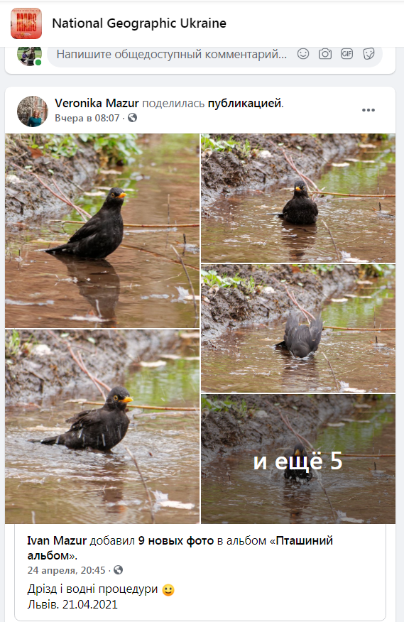 - Дрізд і водні процедури. Львів. 21.04.2021