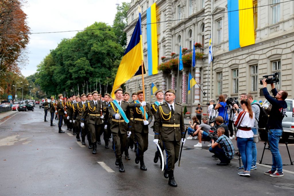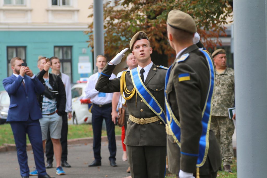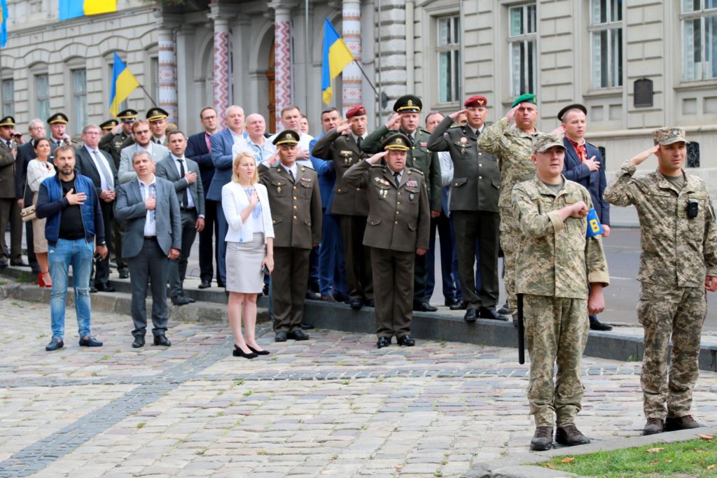 Опісля відбулось урочисте проходження роти почесної варти військовослужбовців Національної академії сухопутних військ імені гетьмана Петра Сагайдачного
