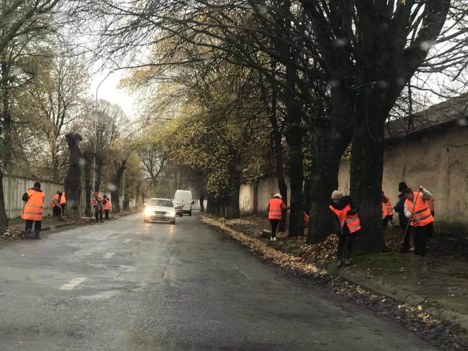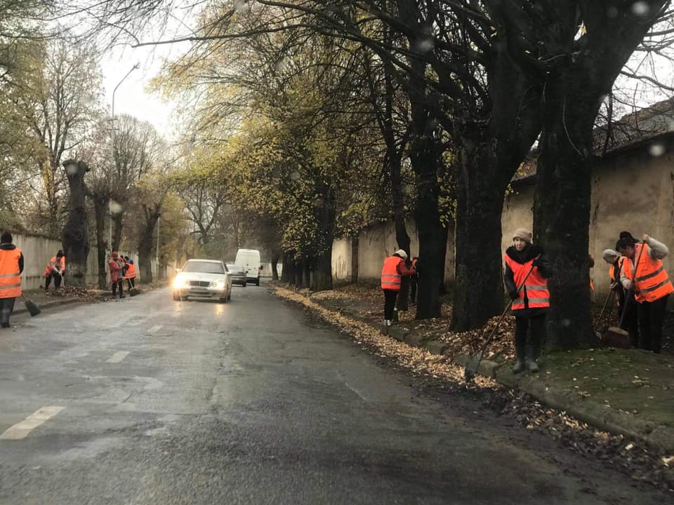 У місті Самбір близько 25 двірників одночасно прибирають вулицю Завокзальну.