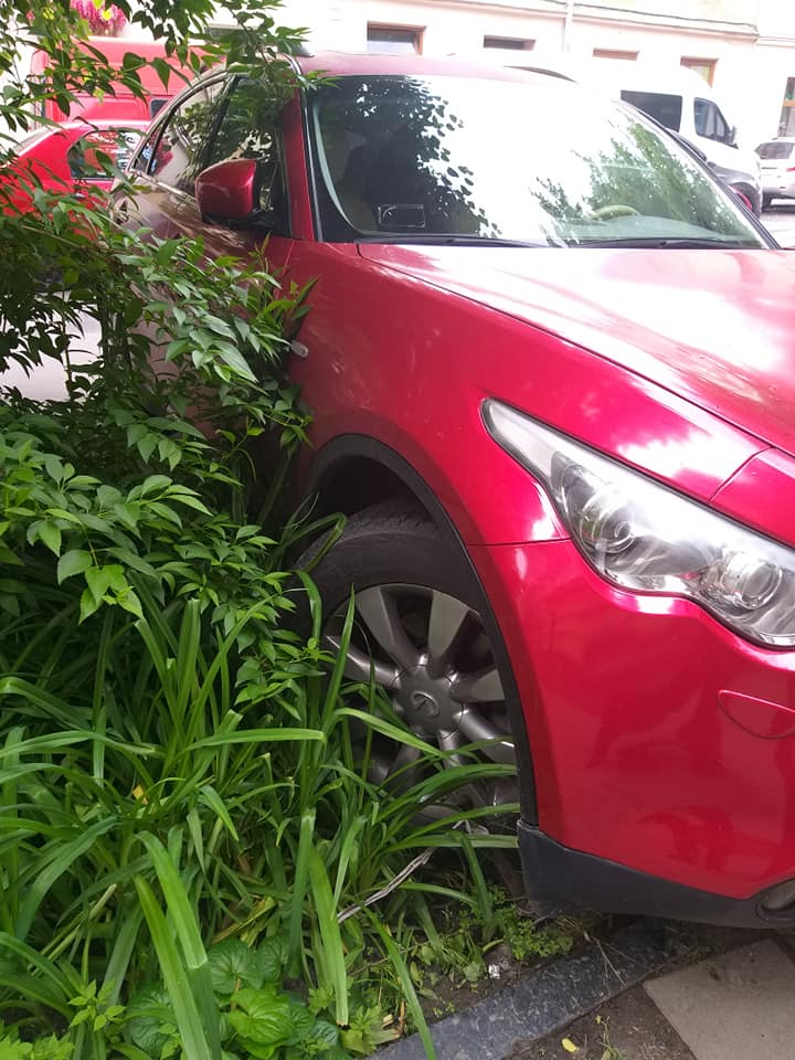 У Львові водій припаркував легковий автомобіль на клумбі засадженій квітами, на вулиці К.Левицького.