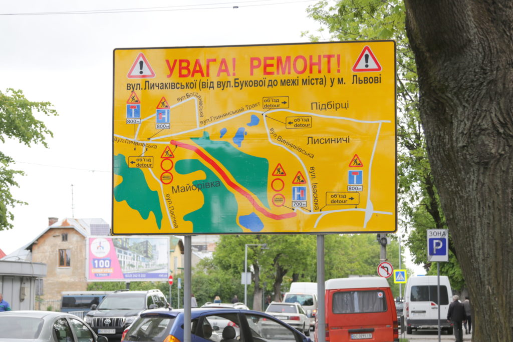 Позначки: вул. Личаківська, громадський транспорт, Львів, ремонт дороги
