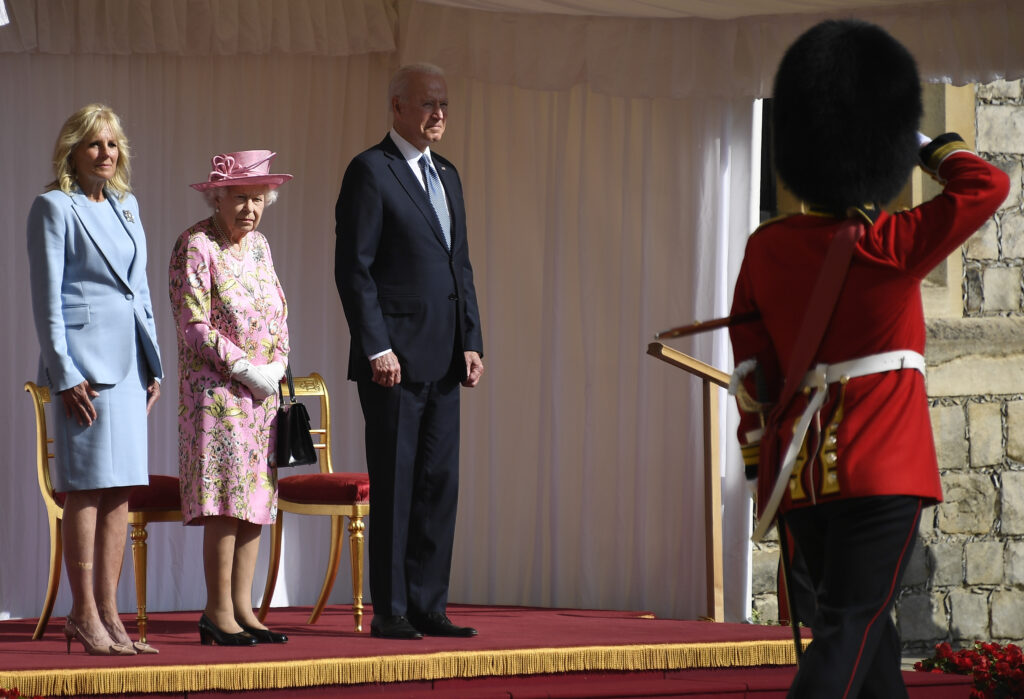 Королева зустріла президентське подружжя у дворі замку. Байдена вітала почесна варта, після чого королева запросила гостей на чай. Зустріч тривала 40 хвилин.