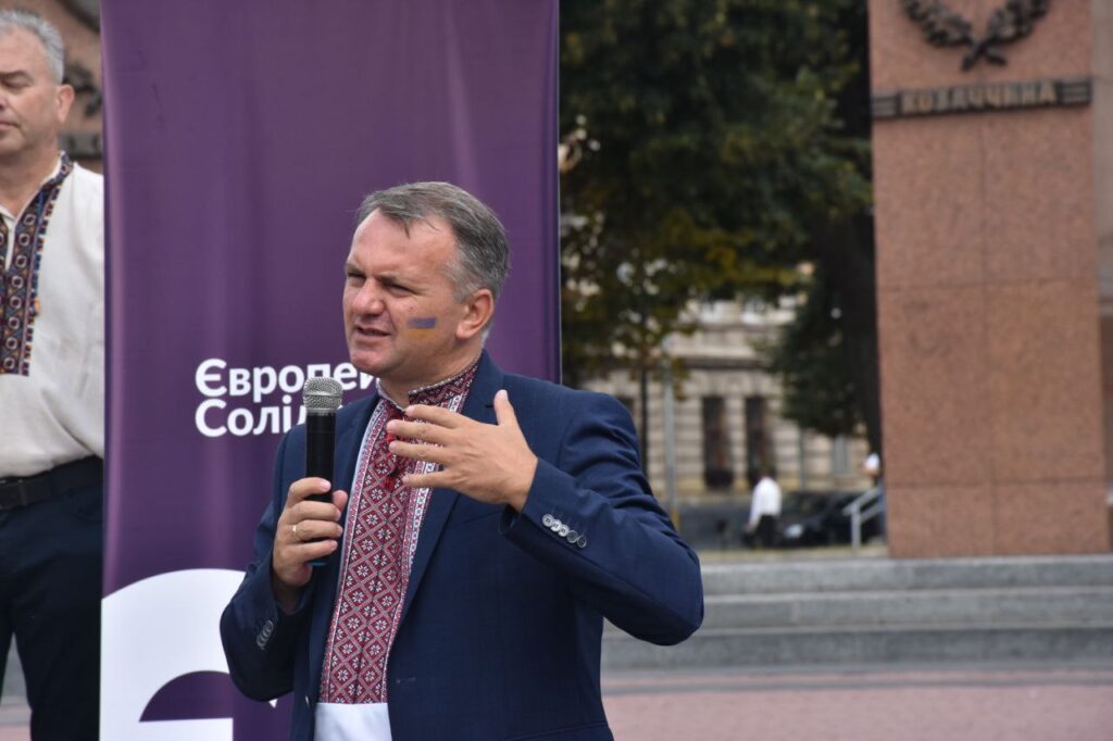 “Я дякую усім, що ми сьогодні зібрались тут. Коли хтось представникам “Європейської Солідарності” буде розказувати, які символи українські, а які – ні, то ми твердо знаємо, що синьо-жовте знамено є нашим рідним кольором. Володимирів тризуб також є нашим гордим символом. Степан Бандера, Роман Шухевич і багато видатних постатей є нашими Героями. Я дуже би хотів, щоб сьогодні “Європейська Солідарність” підняла на свій щит та взяла у руки цю естафету, яку багато поколінь несли як символ. Як символ майбутньої перемоги, як символ майбутньої звитяги.