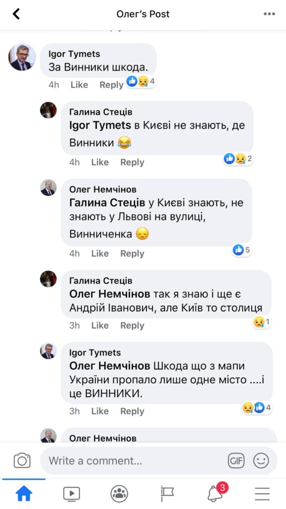Немчінов також зазначив, що “у Києві знають, де Винники, але цього, на жаль, не знають на Винниченка, 18”.