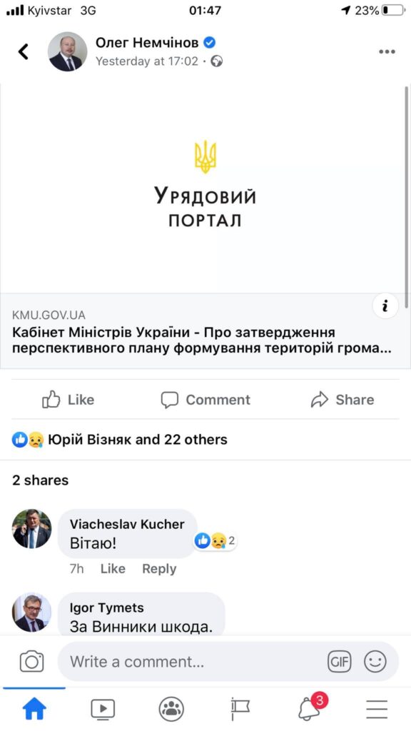 - Скриншот ФБ/Олег Немчінов