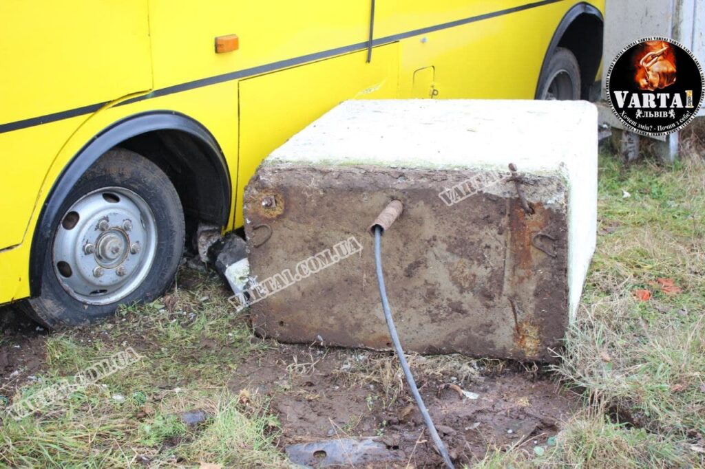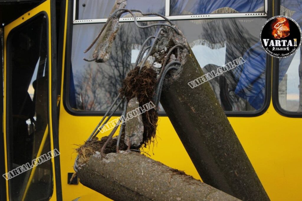Маршрутка № 119 курсувала за маршрутом “Львів–Пустомити”. У маршрутному автобусі, внаслідок аварії, зірвані сидіння у салоні, вибиті вікна.