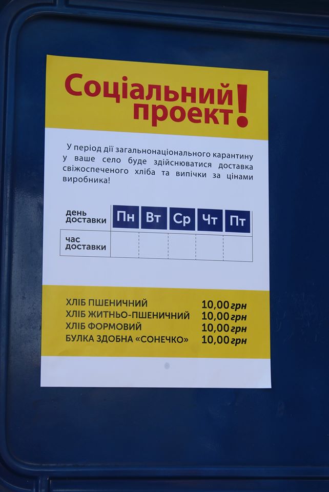 “Забезпечити людей основним продуктом харчування в цей непростий час – важлива справа.Тому в час карантину завдяки ініціативі небайдужих людей вдалось організувати доставку до віддалених сіл свіжоспеченого хліба різних сортів та солодкої здоби за цінами виробника. Стартував соціальний проект з Крехова, куди відтепер тричі на тиждень заїжджатиме автомобіль зі свіжою випічкою. На черзі – Стара Скварява та Мокротин. Дякую головам місцевих рад, які підтримали таку ініціативу, а також “Галицькій здобі”, зокрема, Роману Шимківу, за добру справу”, – зазначив у своємцу дописі Черніховський.