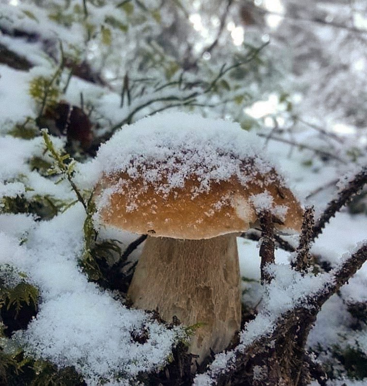 «Дари листопада. Sadyba_smotrych (Івано-Франківська область)», – зазначається у коментарі до світлини засніженого гриба на сторінці «Український контент» у ФБ.
