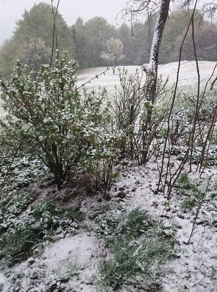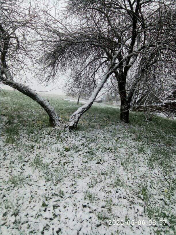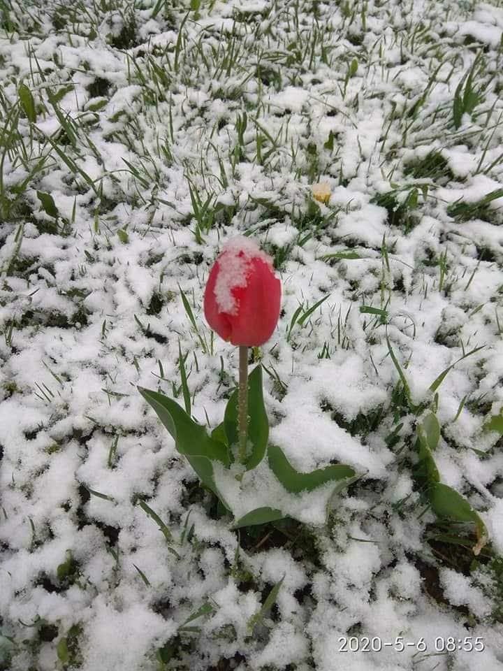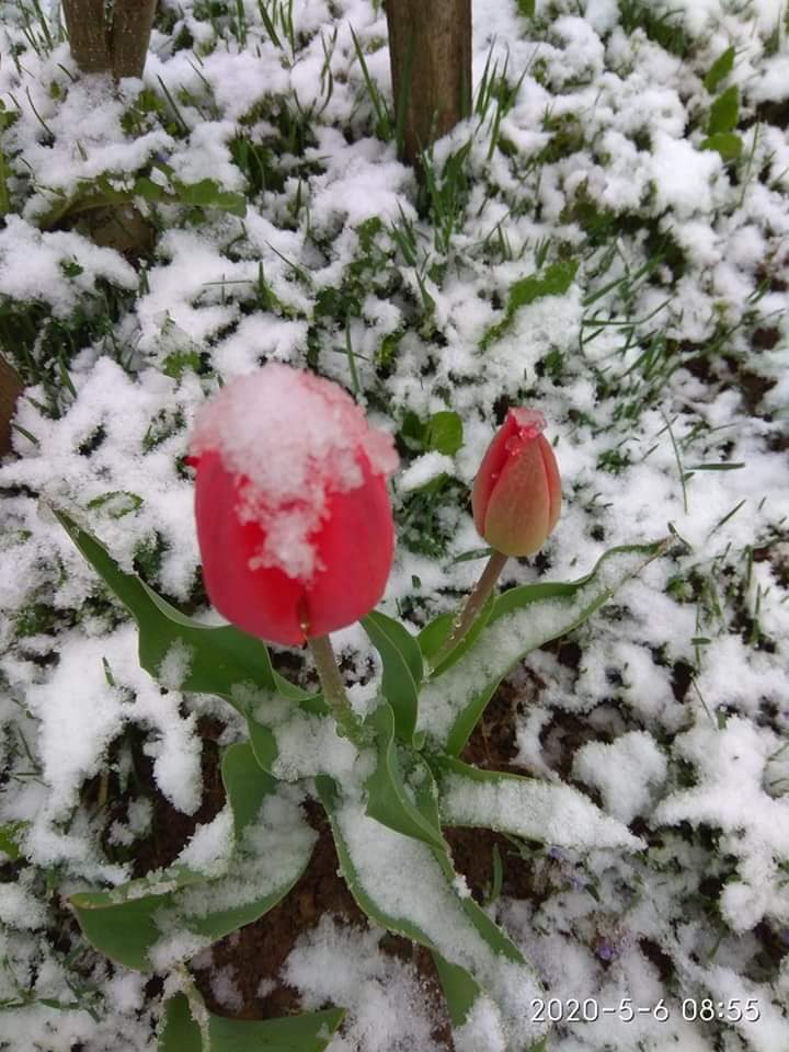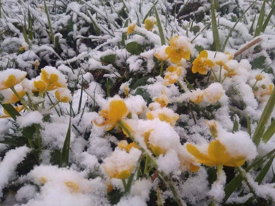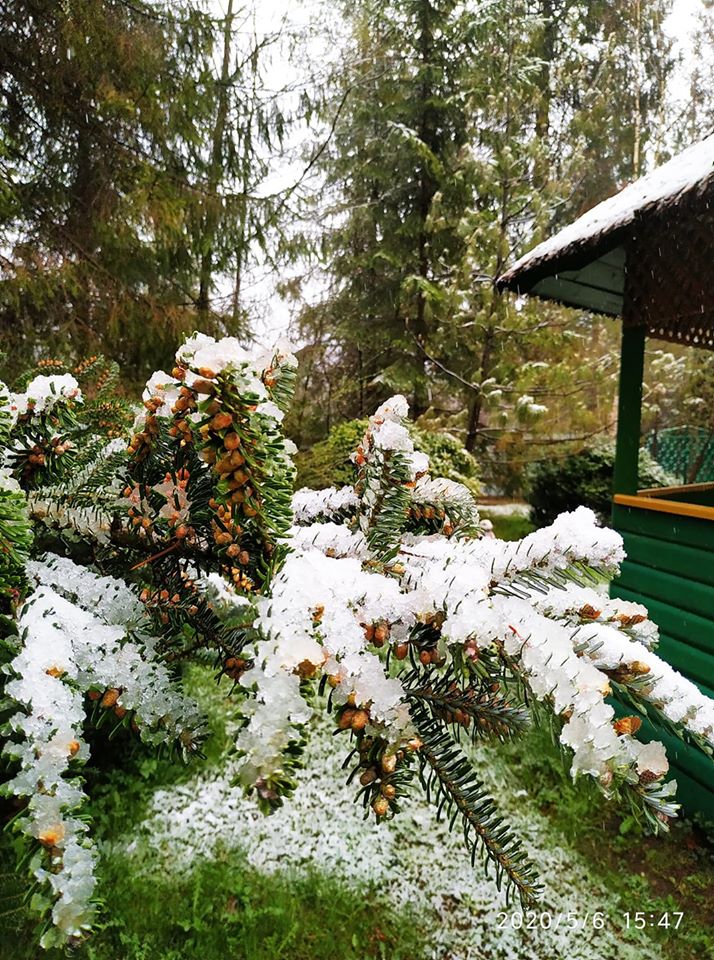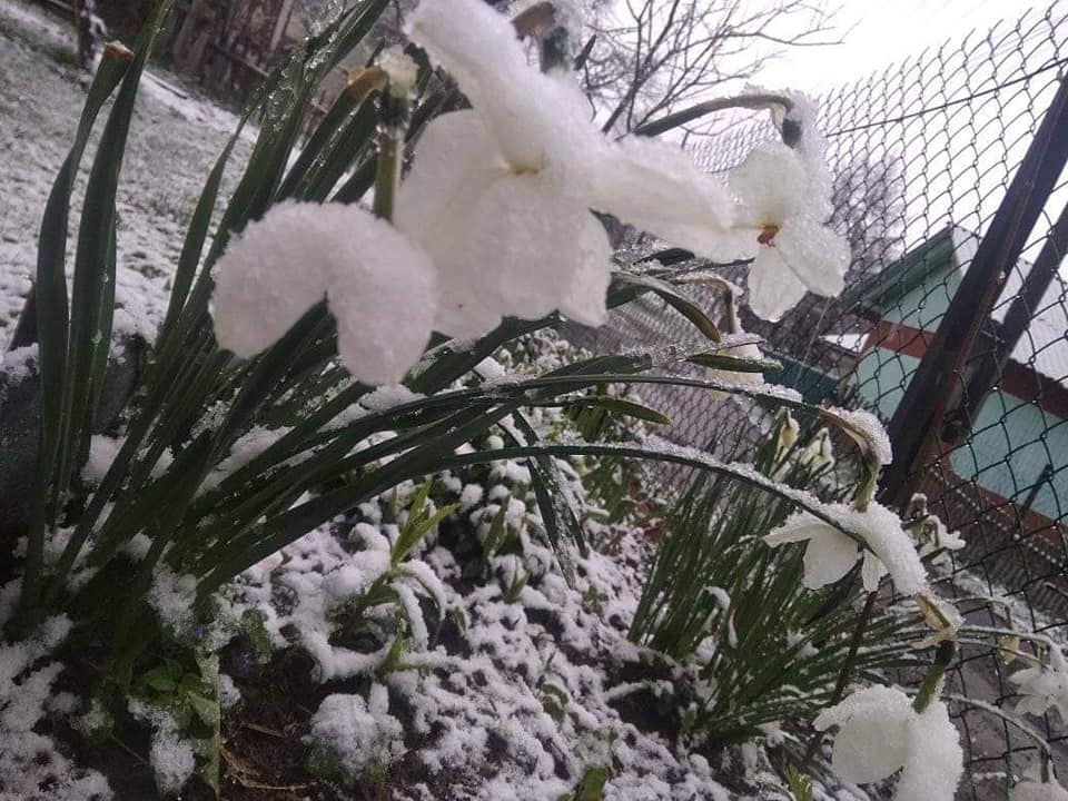 У Сколівському районі на Львівщині, 6 травня випав сніг. Жителі району у соцмережах діляться світлинами засніжених квітів біля своїх помешкань.