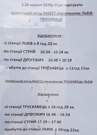 Як пише «Четверта студія», «ВАРТО – Галицькі новини», інформують про години відправлення електрички з міст Дрогобича та Стрия.