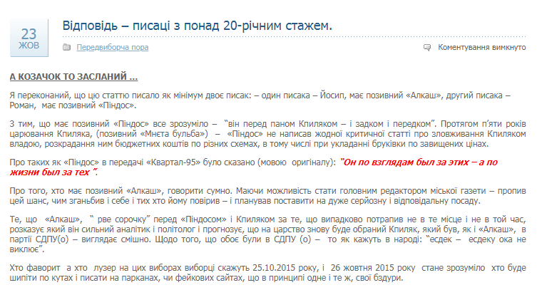 Як зазначається, «особливо зловживає присвоєнням кличок команда Копиляка. Вони, очевидно, самі не розуміють що чинять. Із сарказмом обзивають Гамара – Оленем. Водночас забувають, що їхнього патрона Копиляка серед людей називають “Мнєцкана бульба”. І зважаючи на таку обставину, взагалі мали б оминати цю тему, патрона підставляють».