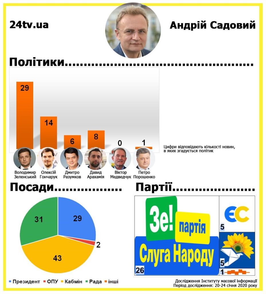 Цікаво, що сам Андрій Садовий у політичних новинах протягом 20–24 січня на сайті 24tv.ua не з’являвся.