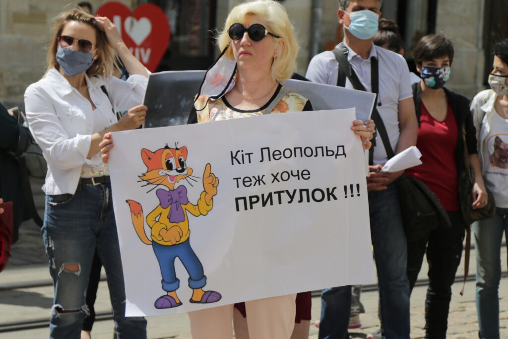 Позначки: акція, зоозахисники, Львів, пікет, притулок для тварин, Садовий