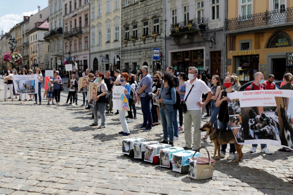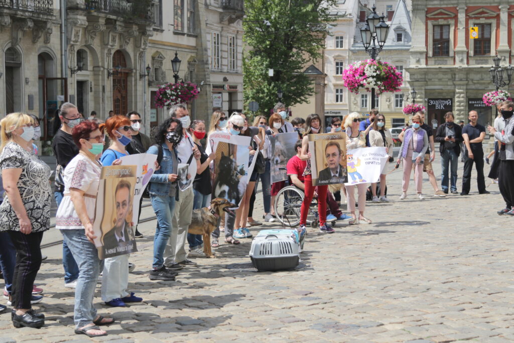 До стін ратуші десятки активістів прийшли не лише з плакатами з красномовними написами, а й зі своїми домашніми улюбленцями.