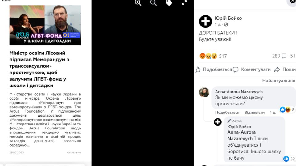 Відомий львівський священик, ієромонах УГКЦ Юрій Бойко у вівторок, 30 травня, опублікував допис, у якому йдеться, що міністр освіти й науки Оксен Лісовий підписав «Меморандум про взаєморозуміння» з ЛГБТ-фондом The Arcus Foundation. Того ж дня Міносвіти опублікувало заяву, у якій заперечило підписання меморандуму із The Arcus Foundation. Проте Юрій Бойко зазначив, що не вірить МОН, оскільки нібито ще місяць тому отримав від таємного друга, який працює в міністерстві, копію оригіналу документа з підписом міністра. Священик продовжує переконувати – один з пунктів меморандуму забороняє поширювати інформацію про домовленості Міносвіти із представниками ЛГБТ
