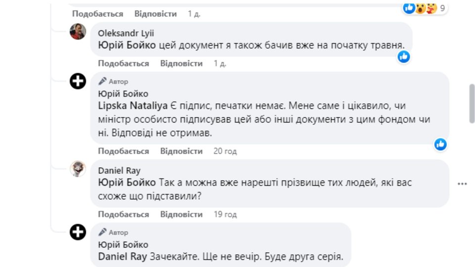 «Беру до уваги, але щось тоді не так, оскільки копію цього документа особисто я отримав місяць тому від одного з експертів, що працюють в МОН. Наразі вдячний Міністерству за офіційне спростування, але особисто почну переглядати та аналізувати під оглядом ЛГБТ-ідеології шкільні підручники», – написав Юрій Бойко.