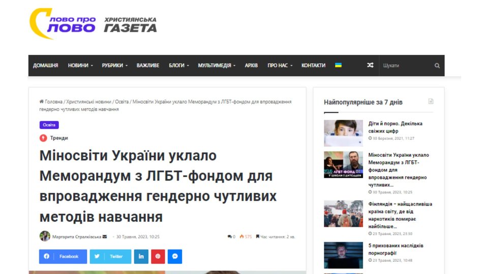- регілійні ресурси, які розповідають про пропаганду ЛГБТ