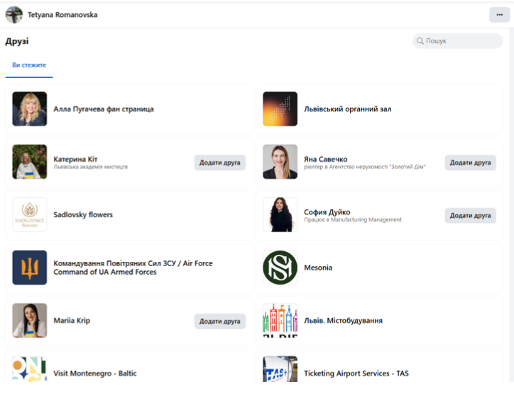 За даними відкритих джерел, Романовська мала щонайменше чотири російські номери телефонів, один із яких використовувався для профілю у заблокованій в Україні соцмережі «ВКонтакте». Її контакти у Facebook включають десятки громадян РФ, серед яких: