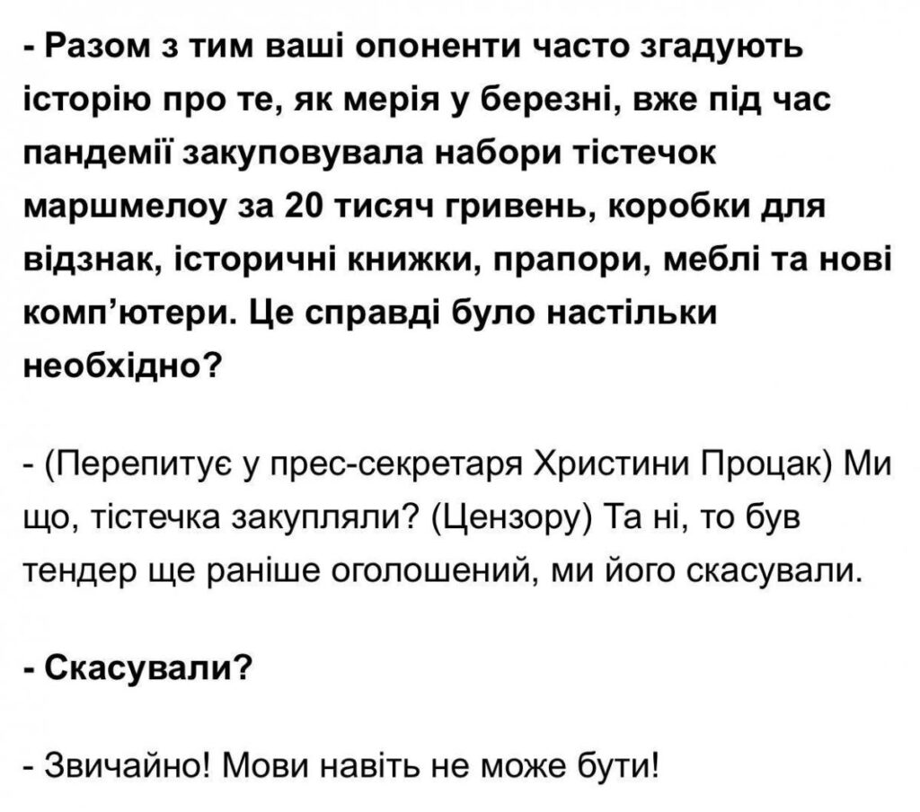 Звісно, міський голова не може знати про всі закупівлі у місті, але про резонансні та скандальні мав би пам’ятати… Велика брехня починається із зефірок.