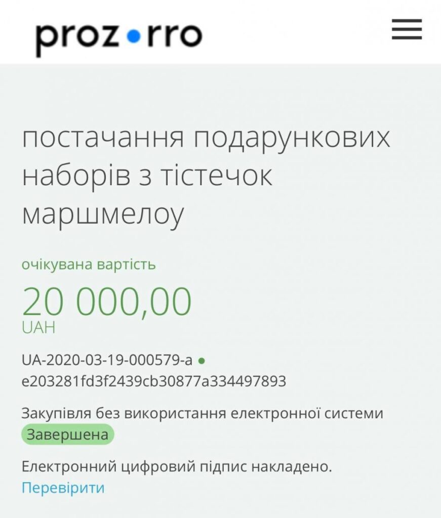 Але, як кажуть, рукописи не горять… У даному випадку не «горить» інформація у системі Prozorro. Користувачі Фейсбуку одразу знайшли посилання на сайт, де вказано, що закупівля завершена. Ба більше, розміщено укладений договір.