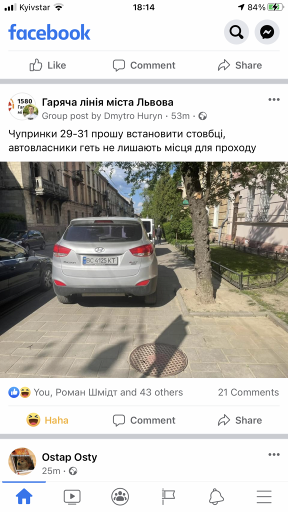 - У Львові на вулиці Чупринки просять встановити стовпці, скрін посту