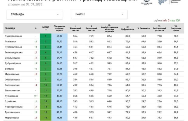 На Львівщині оновили рейтинг громад
