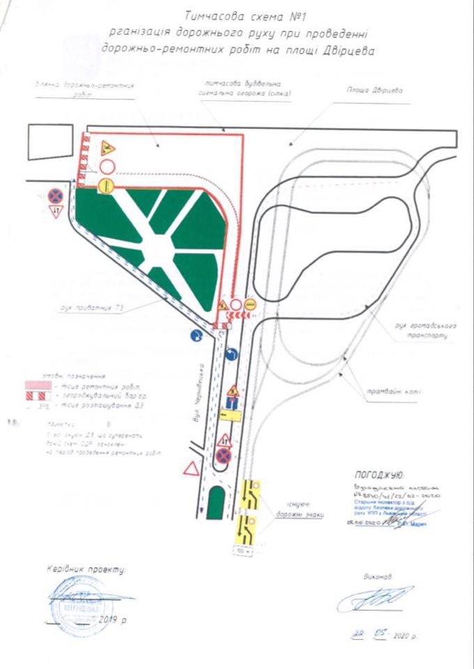 У зв’язку з проведенням ремонтних робіт на пл. Двірцева, з 1 червня з 08.00 год і до 20.00 год 1 вересня 2020 р, буде перекрито рух транспорту на площі.